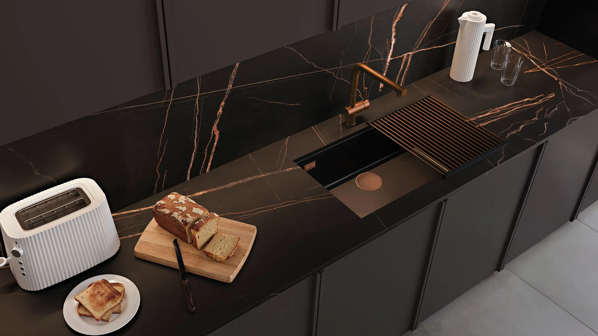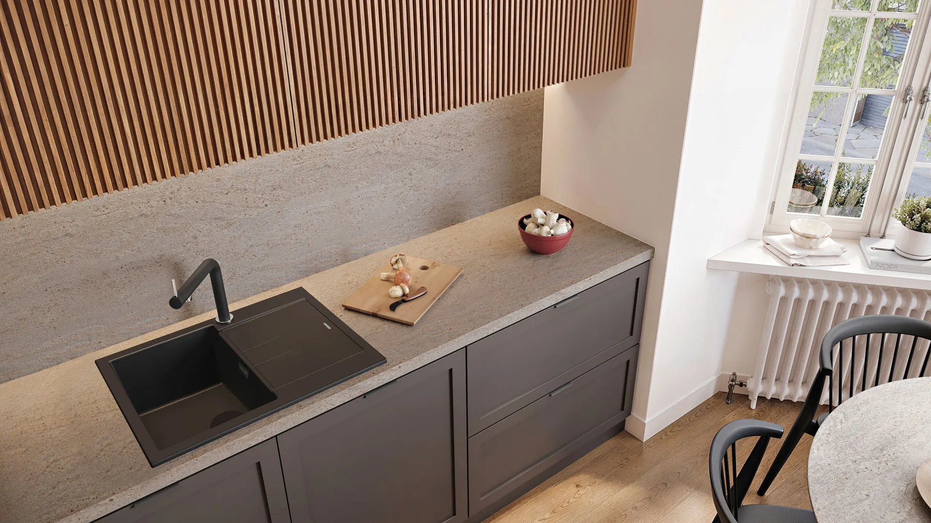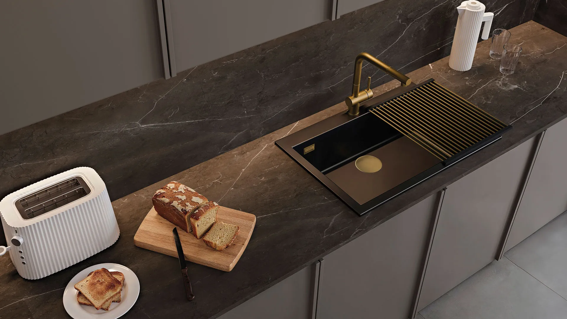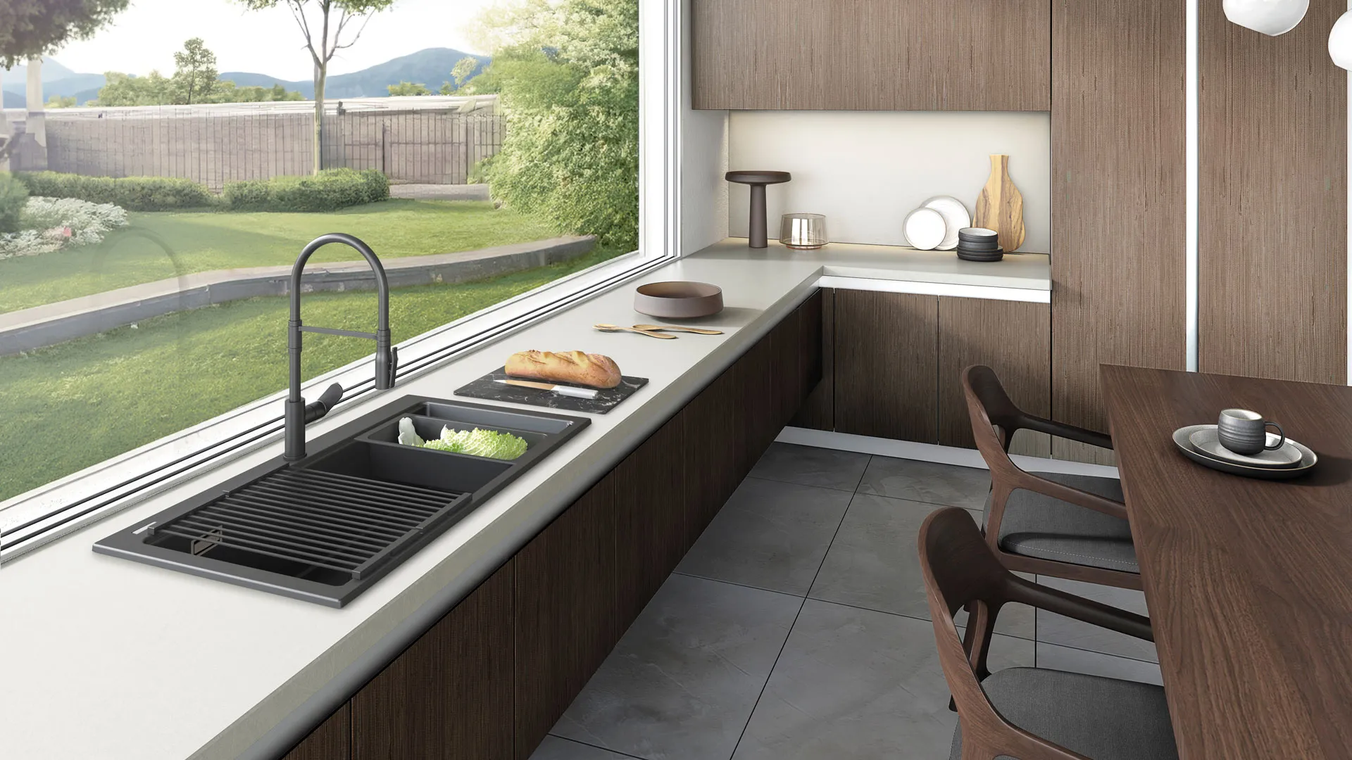Nuestra colección de fregaderos en Ultragranit incluye elegantes fregaderos y accesorios producidos de acuerdo con los canones de un estilo muy marcado. El espectro abarca detalles cuidadosamente a juego, diferentes versiones de la materia prima (ultragranit, ultrametal o nanostone), numerosas posibilidades de colores y accesorios específicos que aportan valor y personalidad para que cada cocina sea única para quien la disfrute.